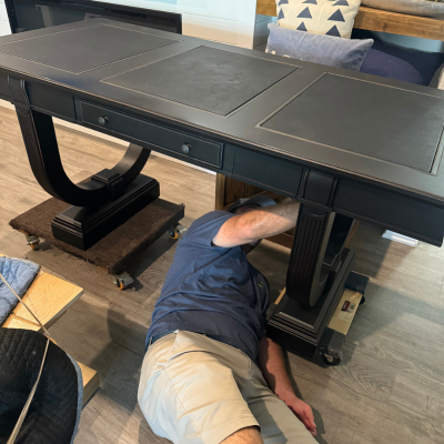 Your home office should scream YOU—only in a sophisticated way. Deck it out with art that makes you smile, quotes that keep you motivated, and quirky decor that makes the space uniquely yours. For me, the desk needed to be the focal point of my room. Something beautiful but but large enough to store ALL THE THINGS. I am obsessed with the beautiful craftsmanship and quality of my new home office desk, but it was a process getting it all set up…see below.