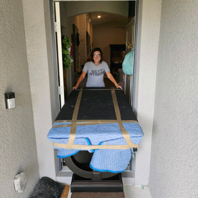 WHEN YOUR FURNITURE DOESN’T FIT THROUGH THE ENTRY WAY, BE SURE YOUR AWESOME HUBBY IS NEARBY SO HE CAN TAKE IT APART AND REASSEMBLE IT (THANKS BABE <3)
